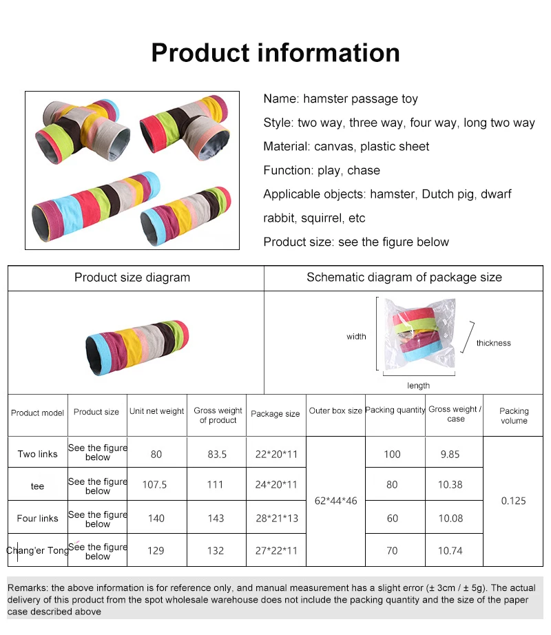 Suitable for: The play tunnel can hold guinea pig, ferret, rats, sugar glider, hedgehog, rabbit and other small animals.